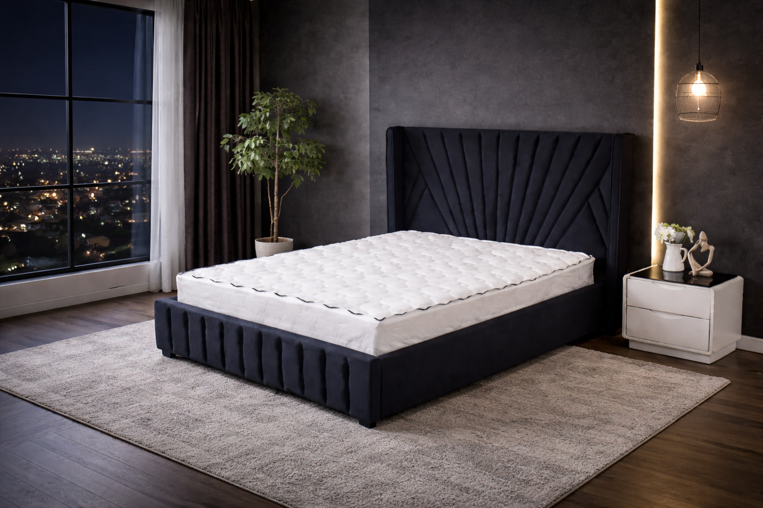 Disponible en beige lumineux ou en noir profond, il apporte élégance et confort à votre espace nuit.