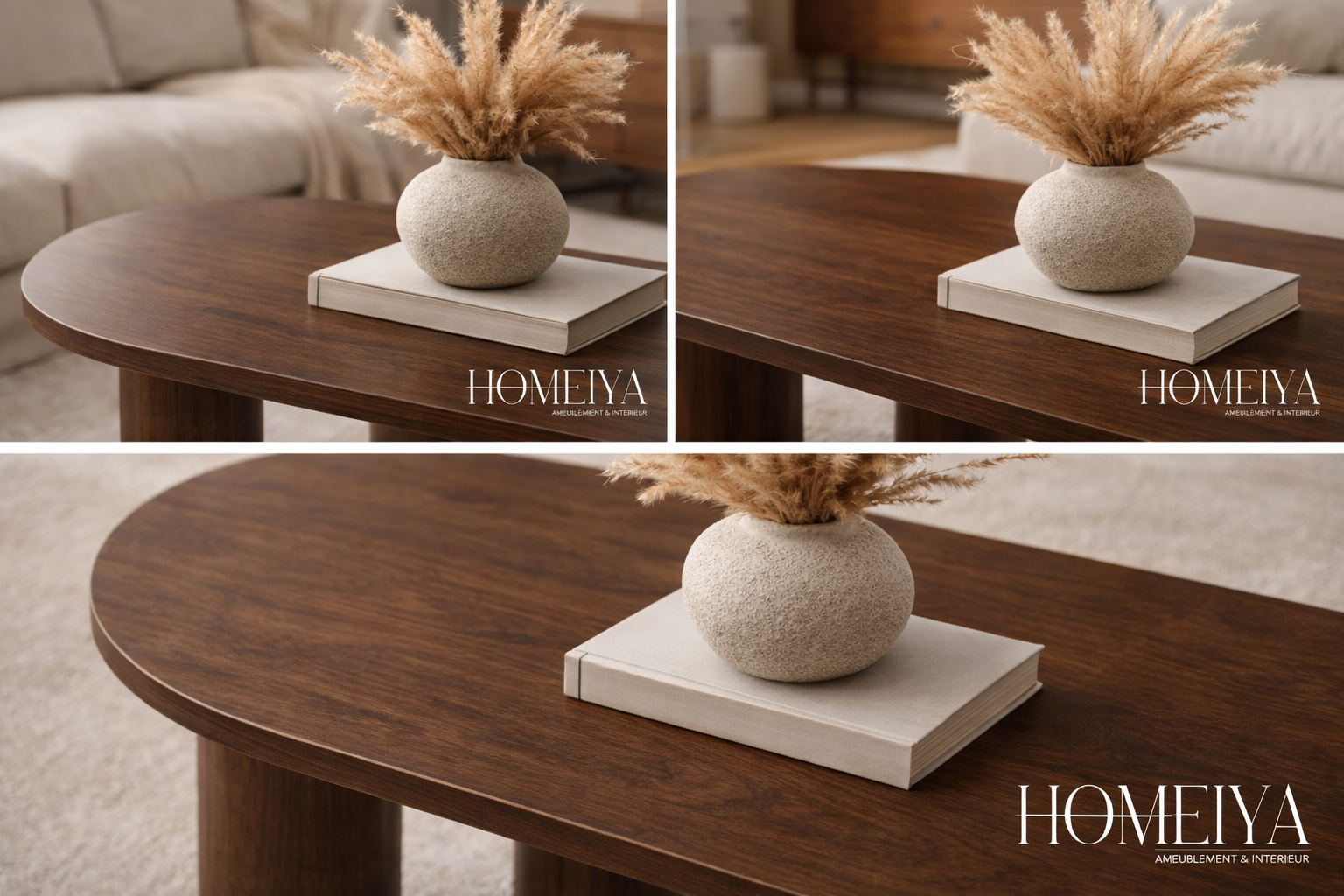 Entièrement réalisée en bois coloris noyer, Noya apporte chaleur, caractère et sophistication à l’espace. Son esthétique épurée et ses volumes harmonieux en font une pièce centrale qui structure naturellement le salon sans l’alourdir.