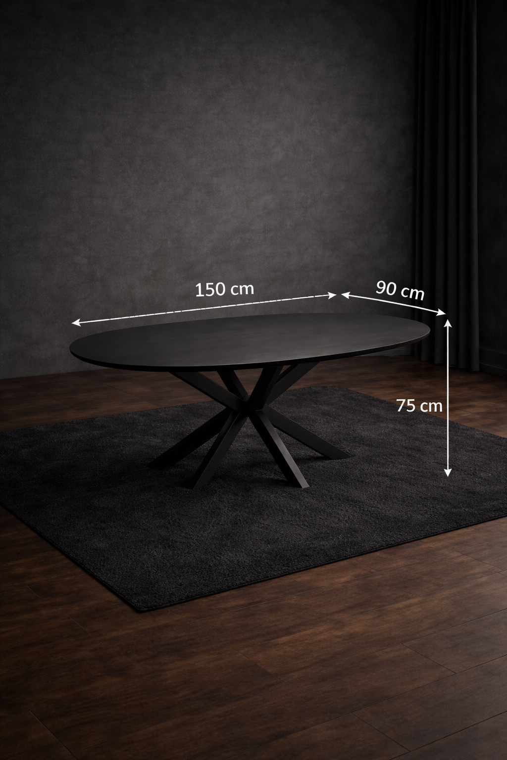 Son piètement central en métal noir au design sculptural assure une excellente stabilité tout en offrant une silhouette moderne et aérienne.